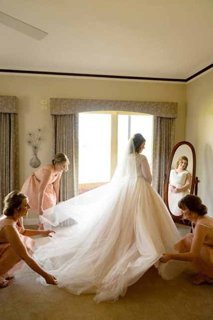 Krystie’s truly amazing wedding dress was a ballgown fit for a princess! The tulle skirt was topped with an incredibly gorgeous lace bodice and a sheer, beaded back and looked absolutely divine.