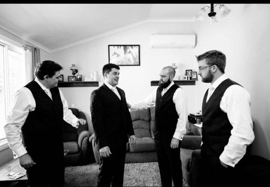 The father of the bride hired the Wade– a black pure wool three-piece lounge suit from Ferrari Formalwear & Bridal.