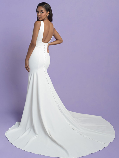 We adore the chic squared-off back and clean lines of this bridal sheath.