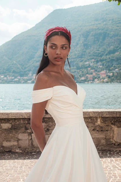 Create your bridal aesthetic with Honor s changeable off-shoulder straps — whether truly classic and minimalist in dove satin or chicly feminine with textured blossoms.